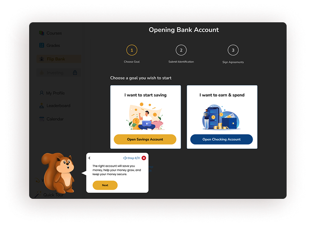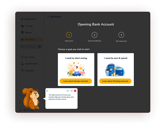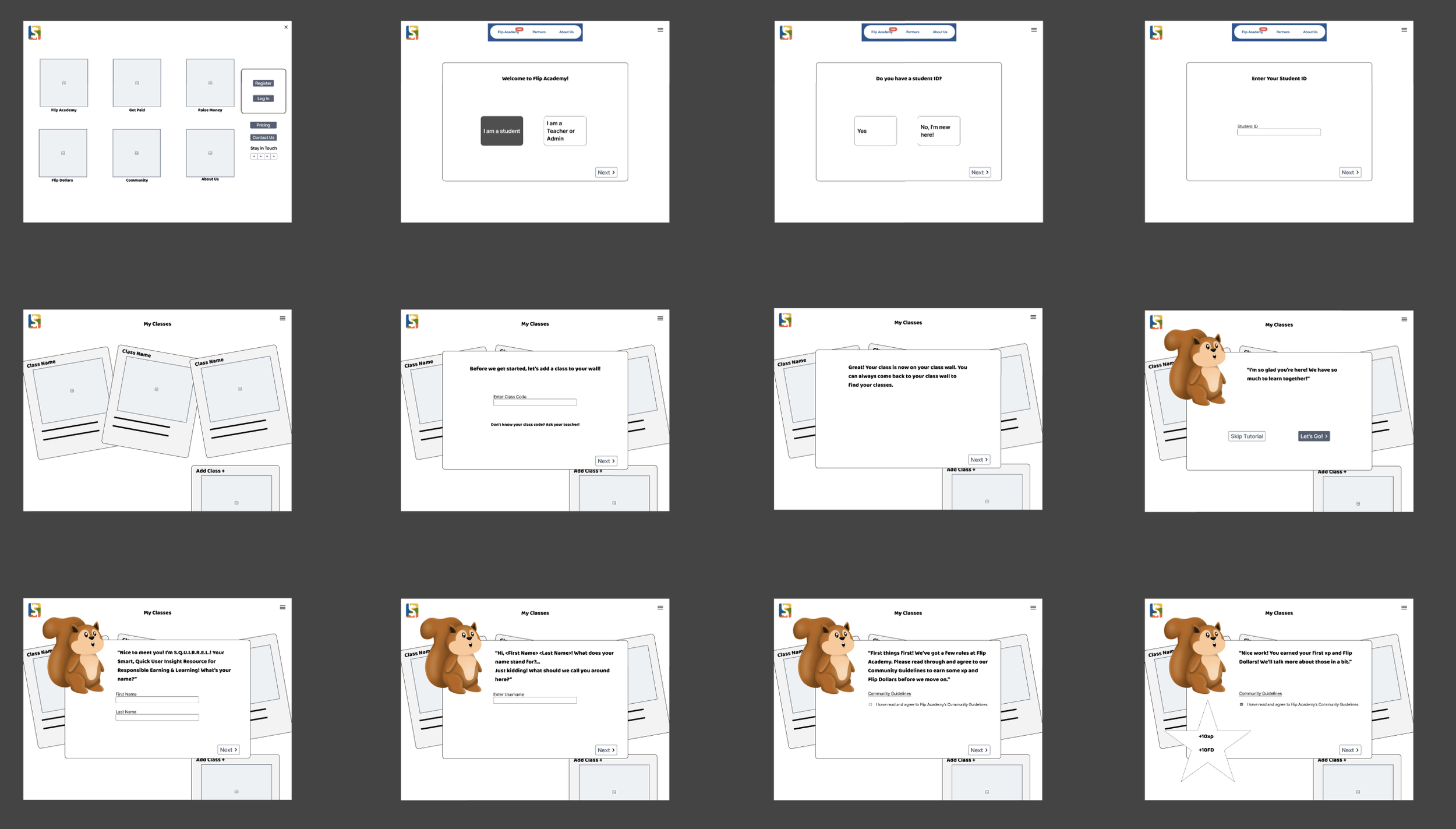 As the courses for Flip Academy are written, tested, and released, the onboarding flow should be continuously updated to reflect the content of the courses. If there’s a SQUIRREL in the introductory tutorial, users should expect to see a SQUIRREL as they learn on the platform.