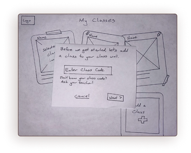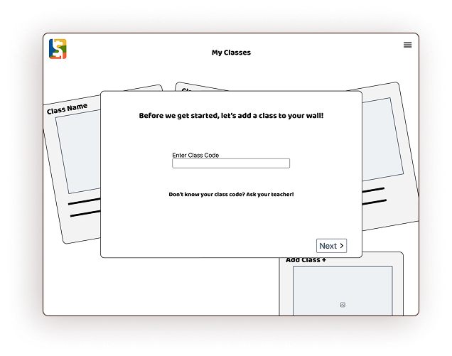 Users must enter a class code during onboarding to associate their school class with their account, adding a class to their “wall.” The original screen used pure white, lacked engaging content, and contained too much confusing text.