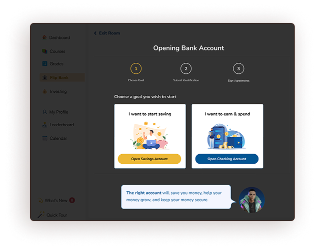 Flip & Floss is a small financial education company, providing tools to youth for learning skills such as money management, saving, and investing. They are developing a platform called Flip Academy, designed for use in the elementary and secondary classroom. Flip Academy’s onboarding flow teaches its users how to use the platform, guides them through connecting a bank account to their profile, and requires them to agree to Flip Academy’s Community Guidelines and connect at least one school class to their account. I worked as part of a small team of UX Designers to revamp the onboarding flow for Flip Academy.